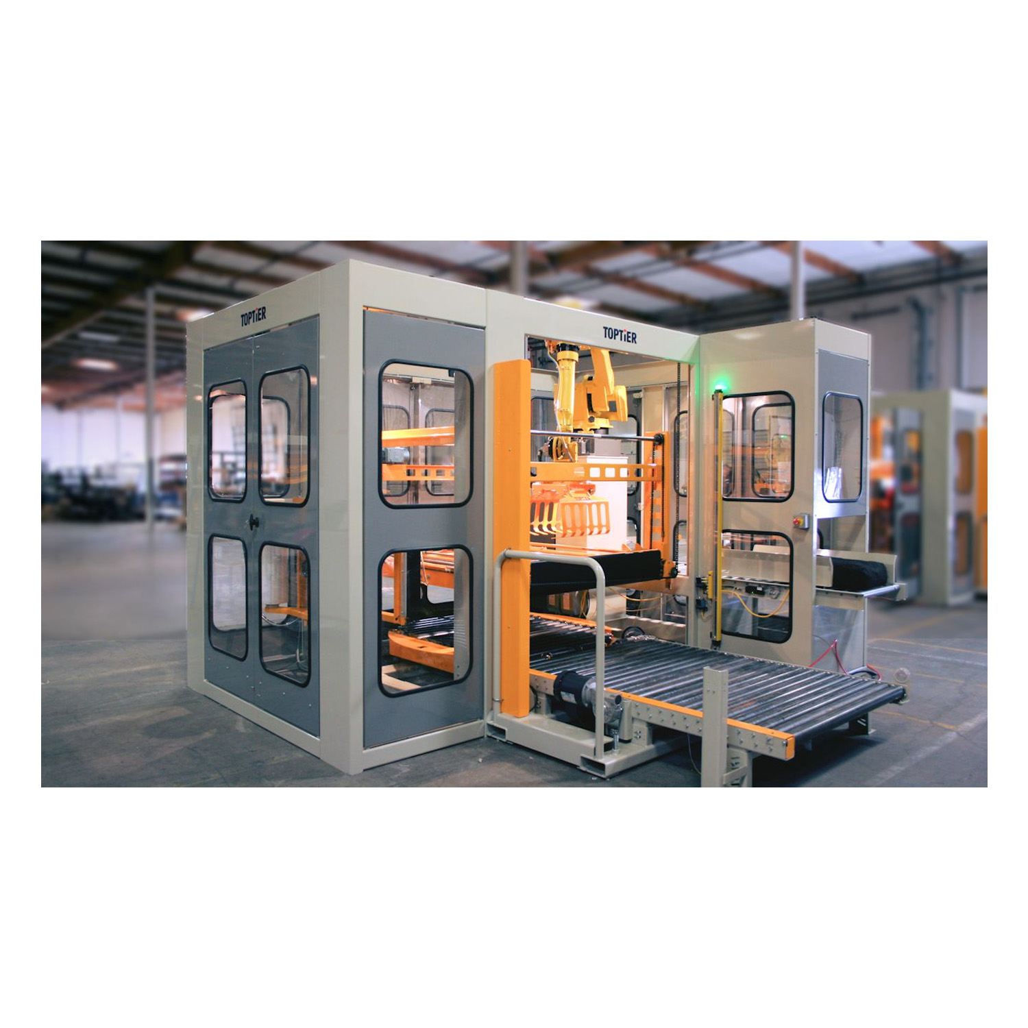 Robot palletizing has become an increasingly accepted alternative to traditional layer palletizing, but the solution is not without challenges. Typical robot palletizing experiences limits on products that can be handled, performance issues with deviations in product uniformity, special training to handle complexities of robot programming, large footprint, custom integration, and the expense of support. All these shortcomings are eliminated with RoboTier.