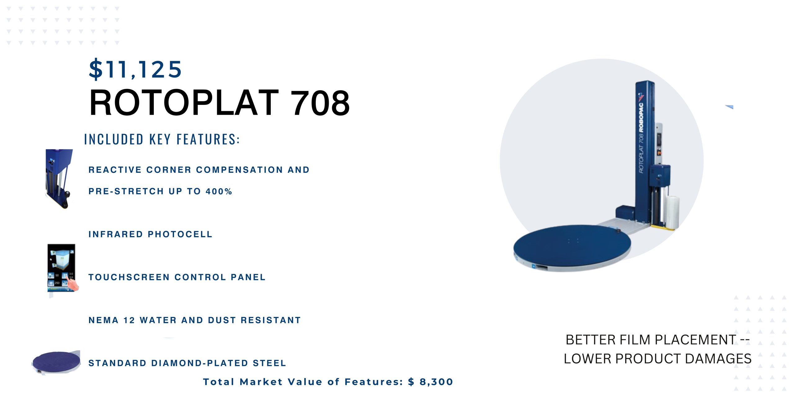 Established in 2001, Robopac USA is the North American branch of Robopac, one of the world’s largest secondary packaging equipment companies. As the leading industrial wrapping machine manufacturer, we offer the largest line of configurable machinery. They’re designed perfectly to stretch wrap, pack, palletize, erect, and seal any product.