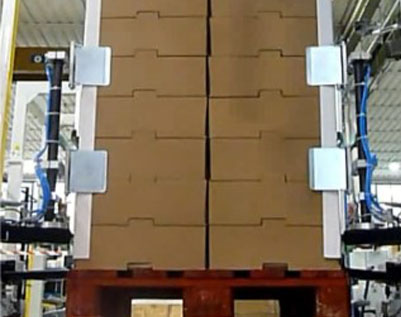 Thanks to a special control system (patented ROBOPAC), the gripping and application devices are able to “locate” in a fully automatic way the four corners of the pallet without any manual setting or adjustment of the system.