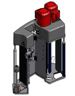 Standard clamp equipped with a system for cutting the film through a hot wire. Also available in the version with double driver for independent movement of the two pincers, ideal for pallets of varying size.